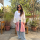 Crafted from premium quality, light weight, breathable linen. Featuring a vertically placed geometric block-printed panel that elongates the relaxed silhouette and adds a subtle artistic touch.