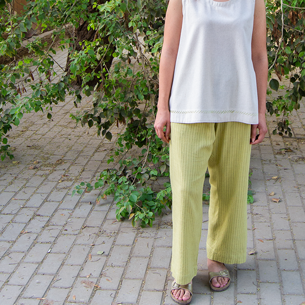 Style Tip: For a fantastic look style with Mim's LOUNGE Linen Pants in apple-green.
